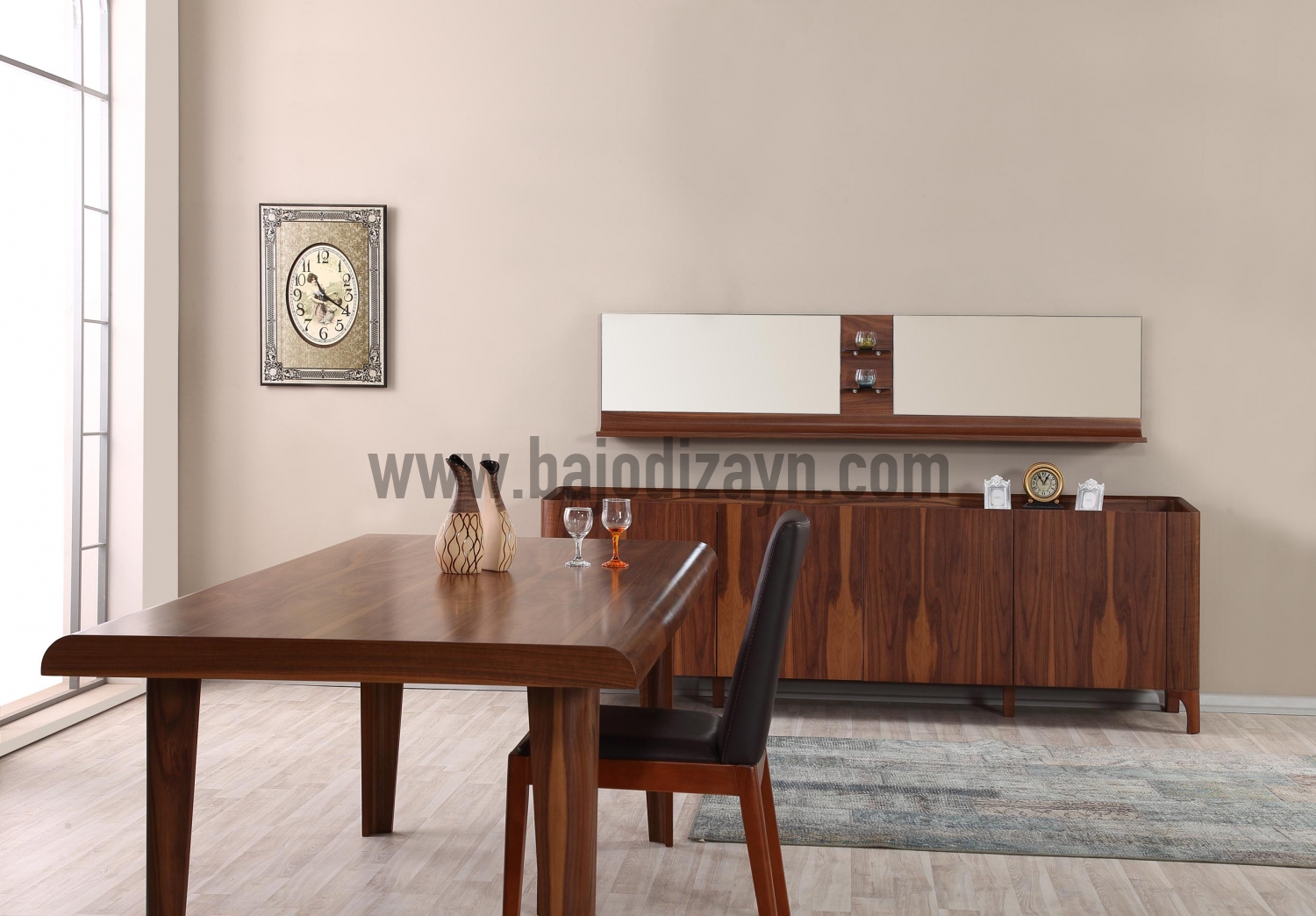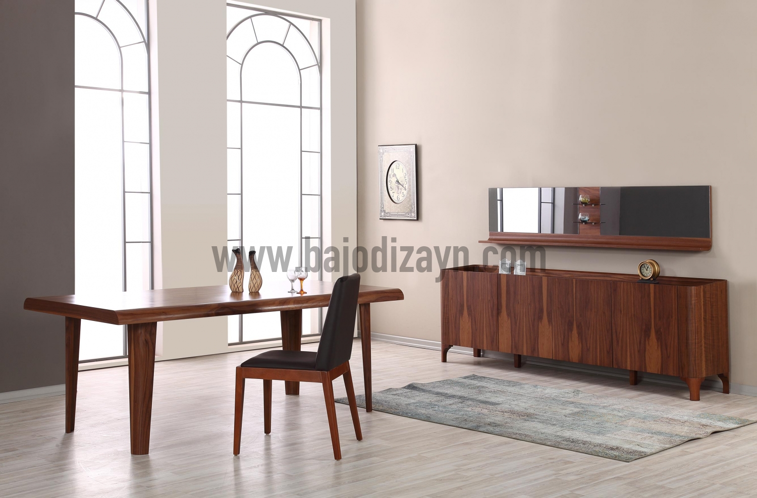 Konsol (ayna hariç - 76*49*231) - Masa (76*101*208 200* ve 180* cm mevcut) - Sandalye (48*48*92) - Ayna (46*17*206)